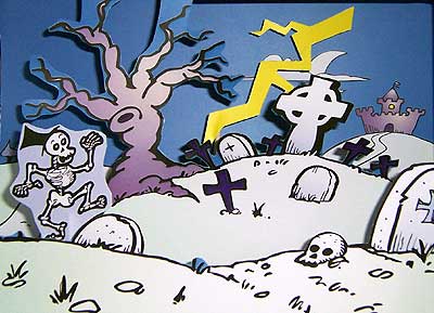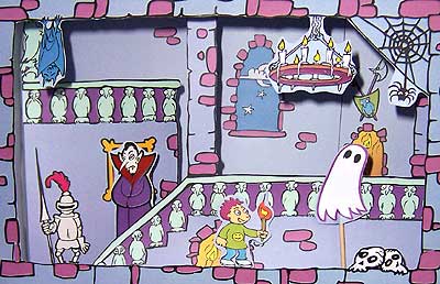 Flatter das Gespenst machen das alte Gruselschloss und den Friedhof in